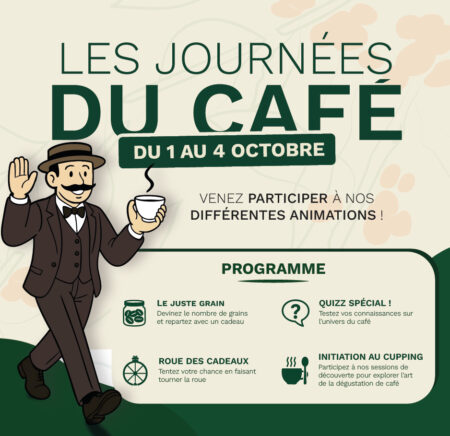 Du 1er au 4 octobre, les Journées du Café vous attendent dans notre boutique rue du Docteur Leroy avec plein d’animations ! Portées par le Collectif Café, ces journées mettent à l’honneur le café et ses artisans.