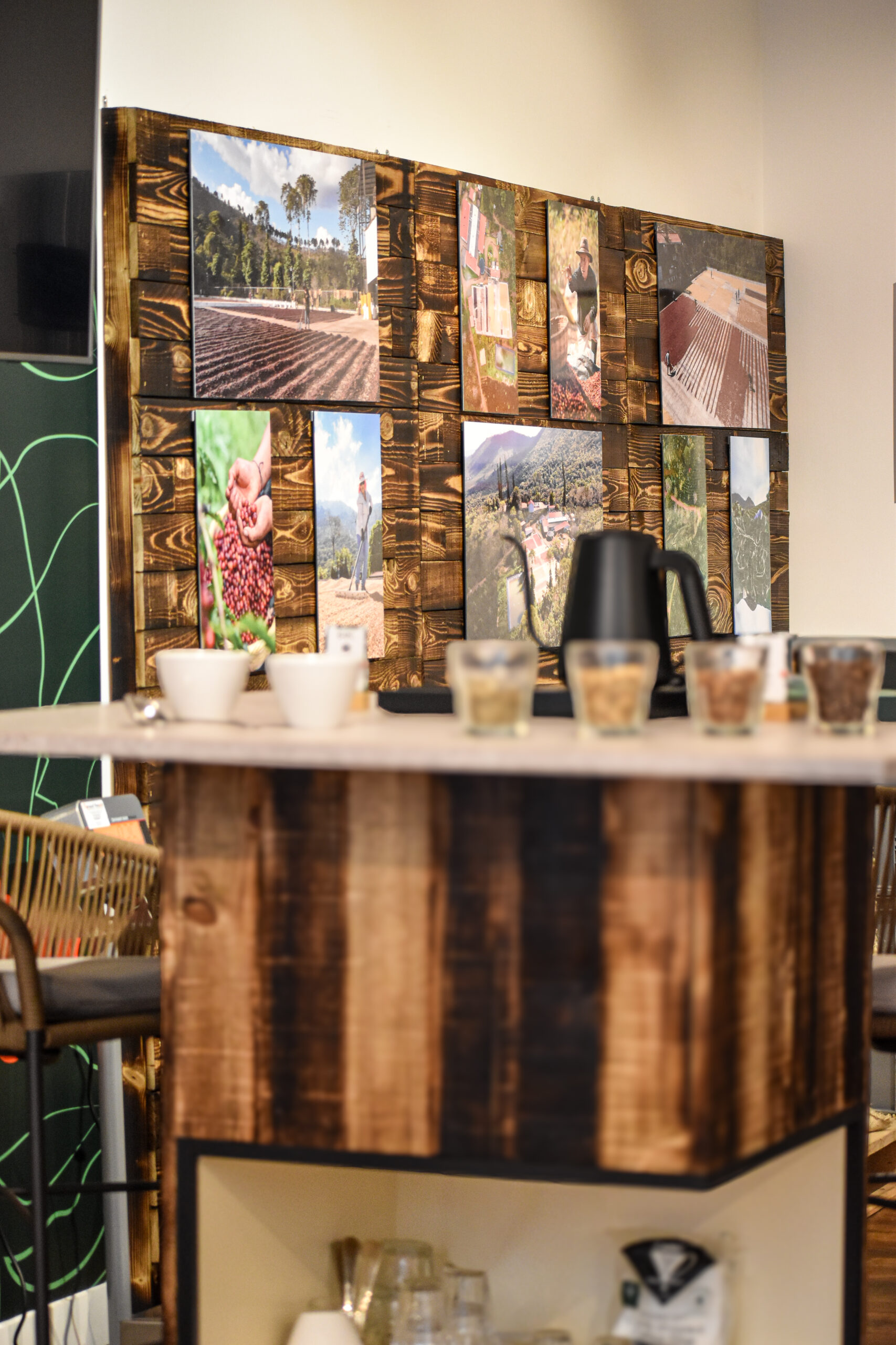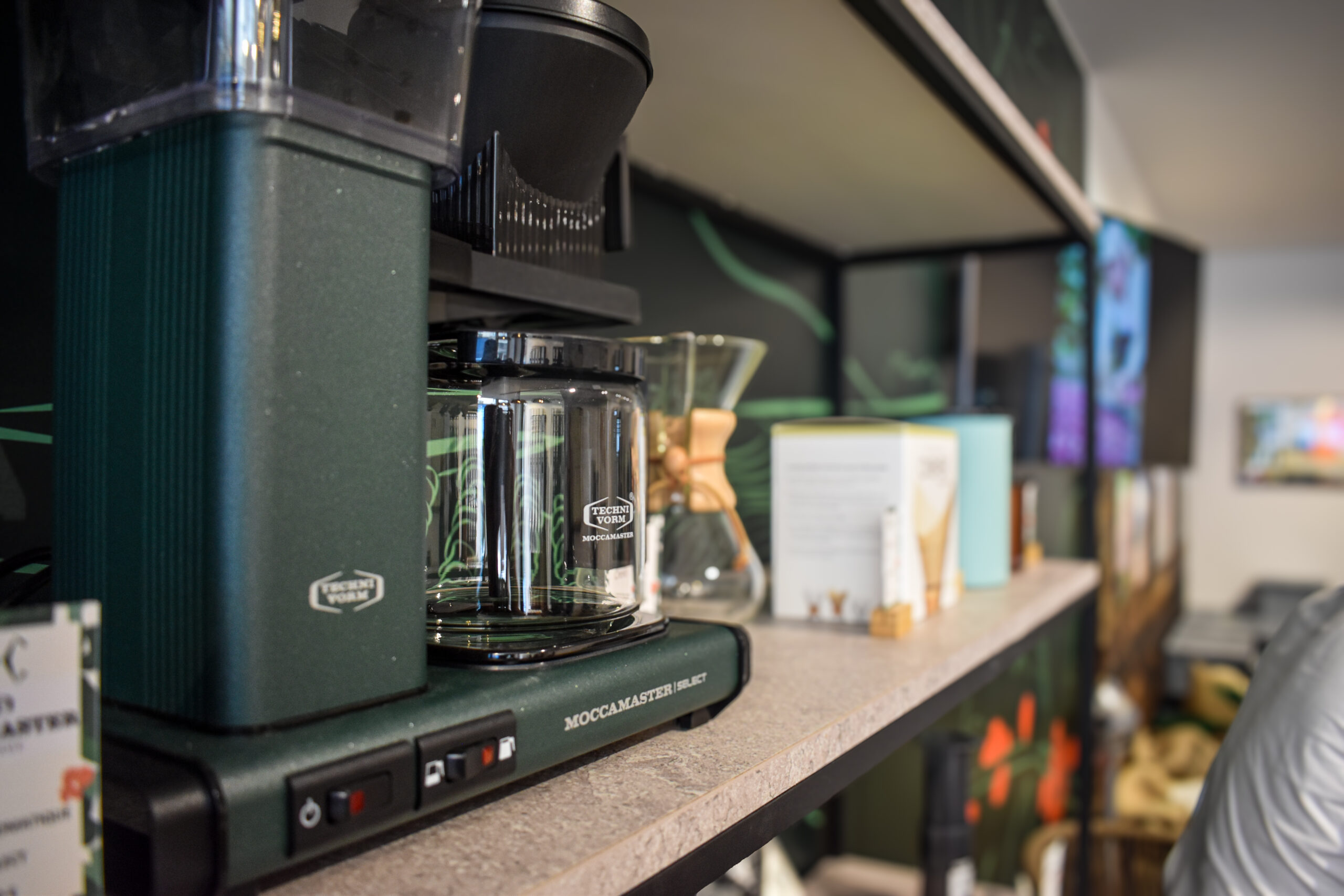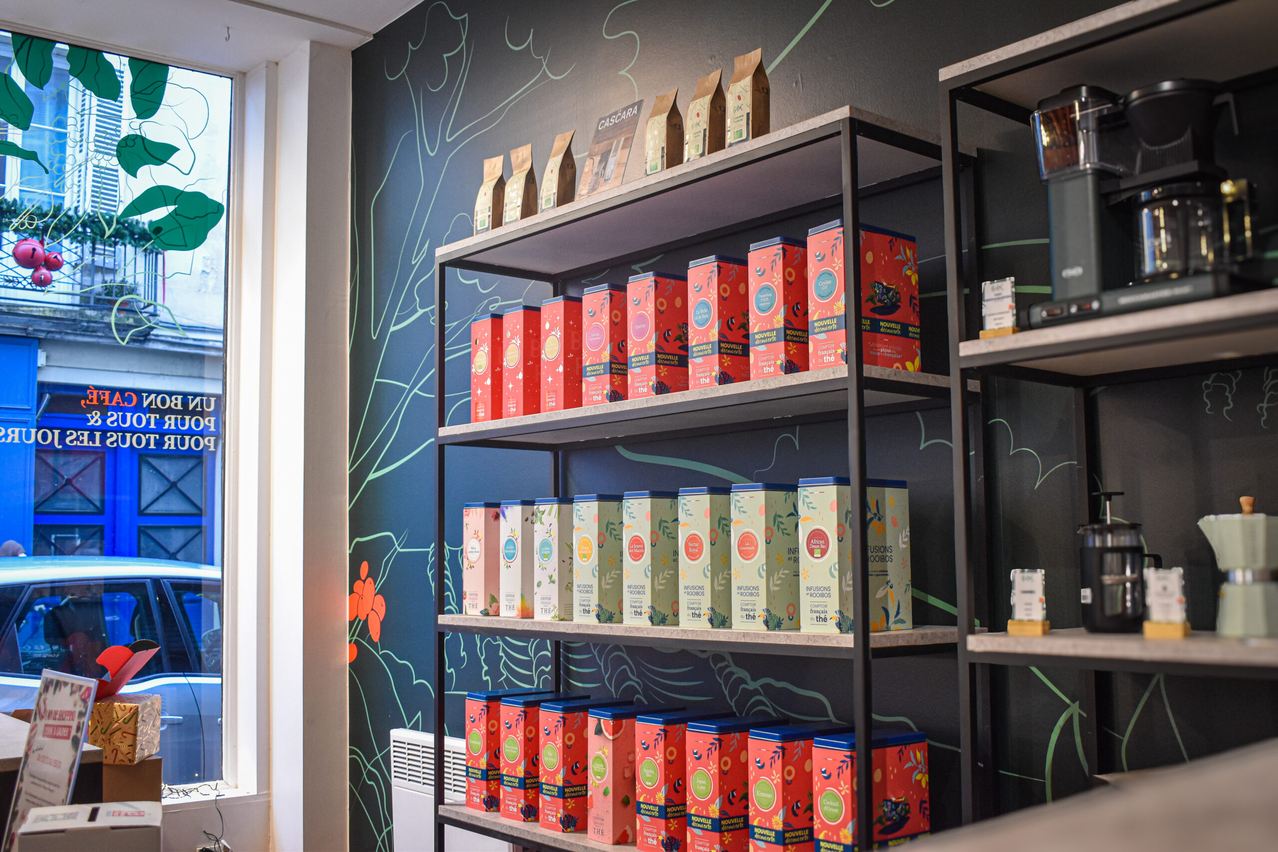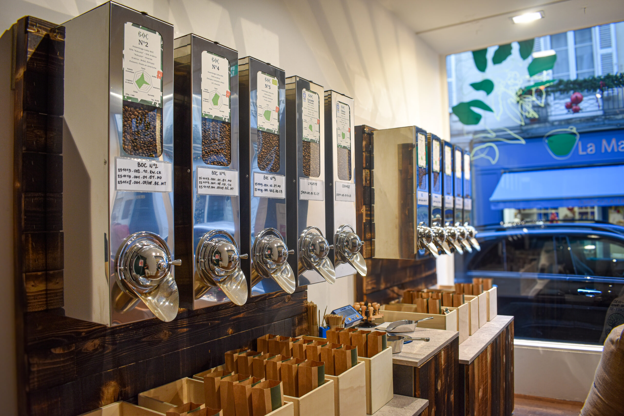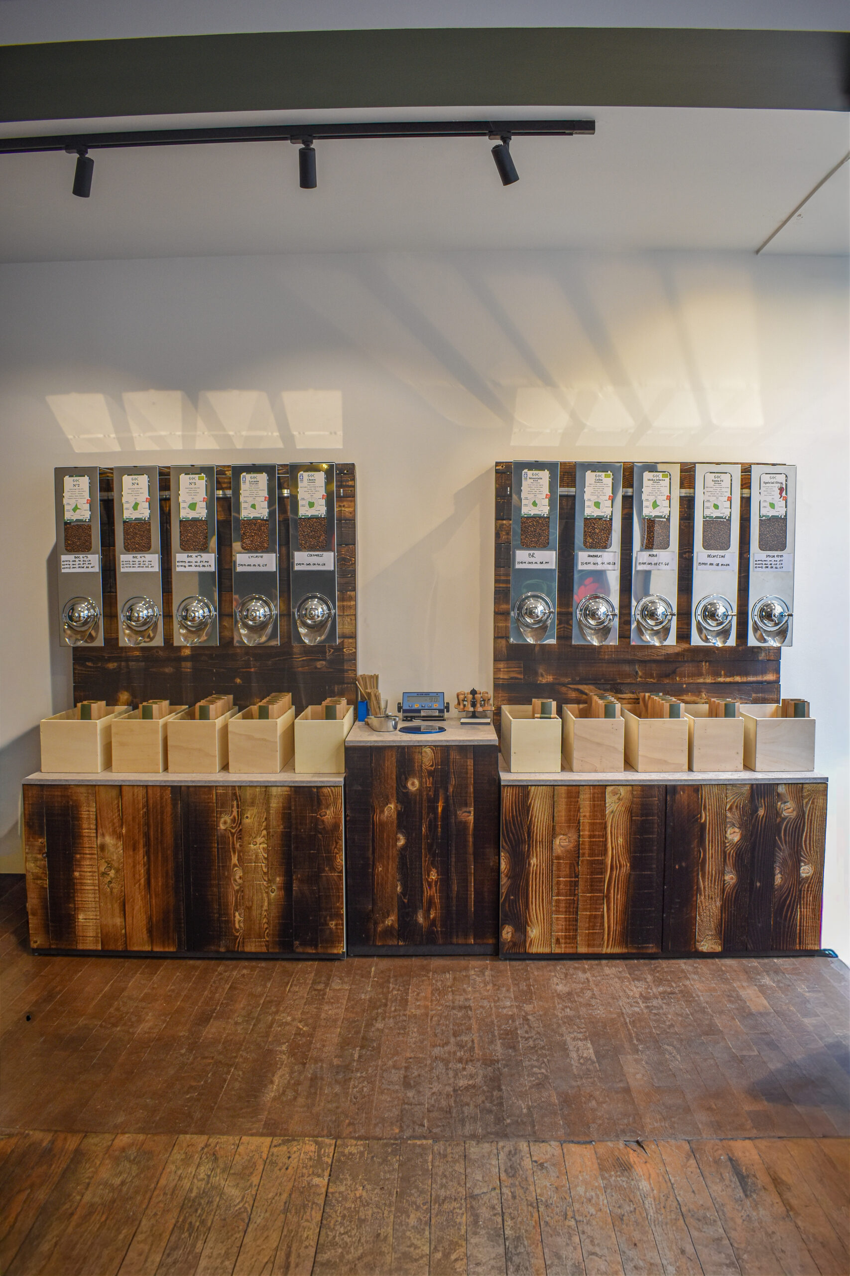 La boutique propose une sélection de cafés de spécialité fraîchement torréfiés, ainsi qu’un espace dédié aux amateurs de café : grains, moulus, accessoires et conseils personnalisés.